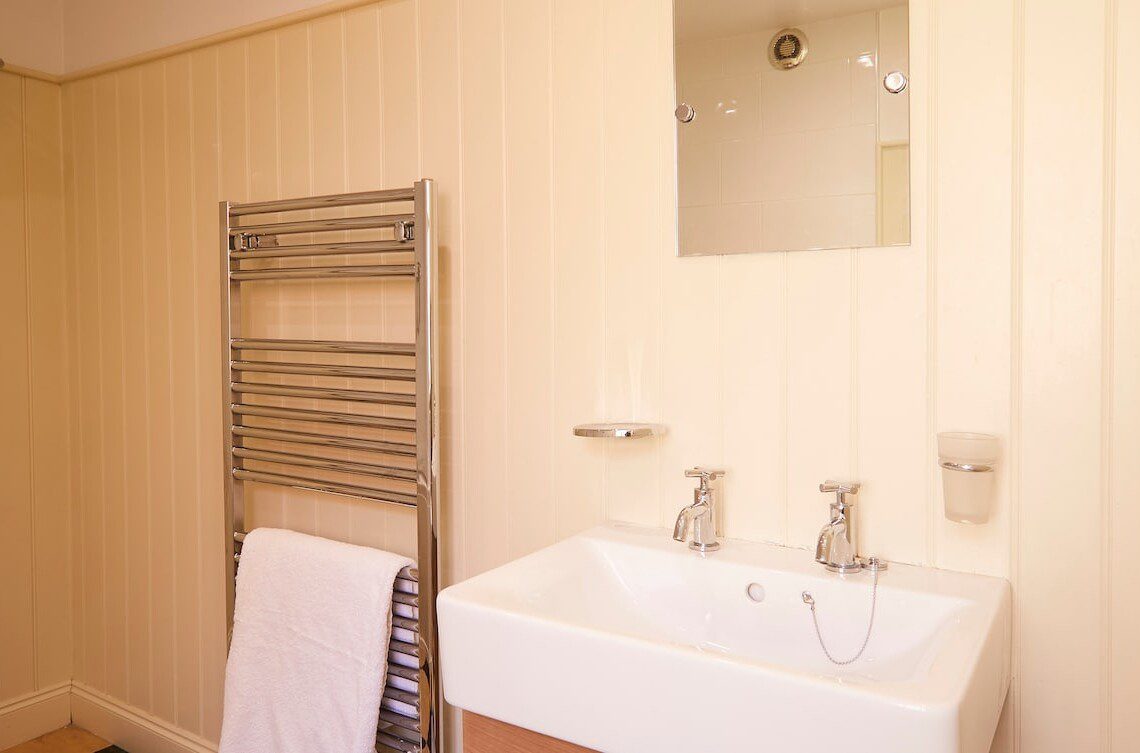 The mid-level snug, with its New England style, free Wi-Fi and Freeview, is a hit with teenagers and parents alike – a cosy hideaway for quiet time. There’s also a family bathroom and a separate cloakroom, so no one’s queuing in the morning rush.