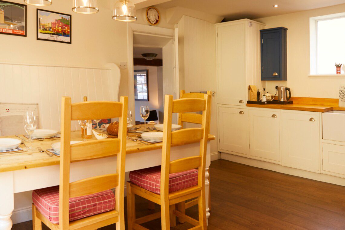 Inside, the layout is charmingly higgledy-piggledy, with clever use of space at every turn. There are three inviting bedrooms: a super king with ensuite shower room, a king, and a twin. The kitchen-diner is big enough for everyone to gather, and it opens onto a secluded little garden – a rare find in central Whitby – perfect for morning coffee or a barbecue after a day out.